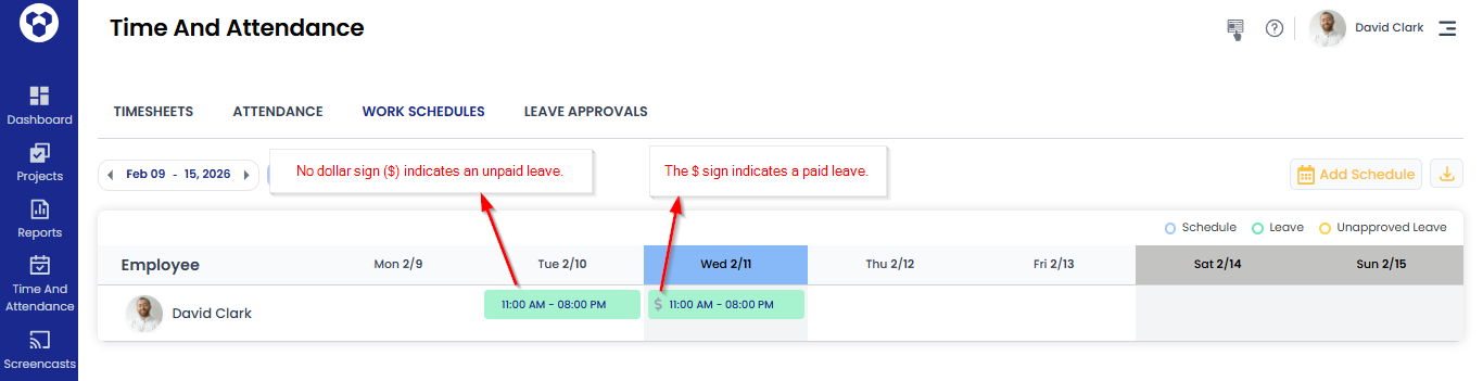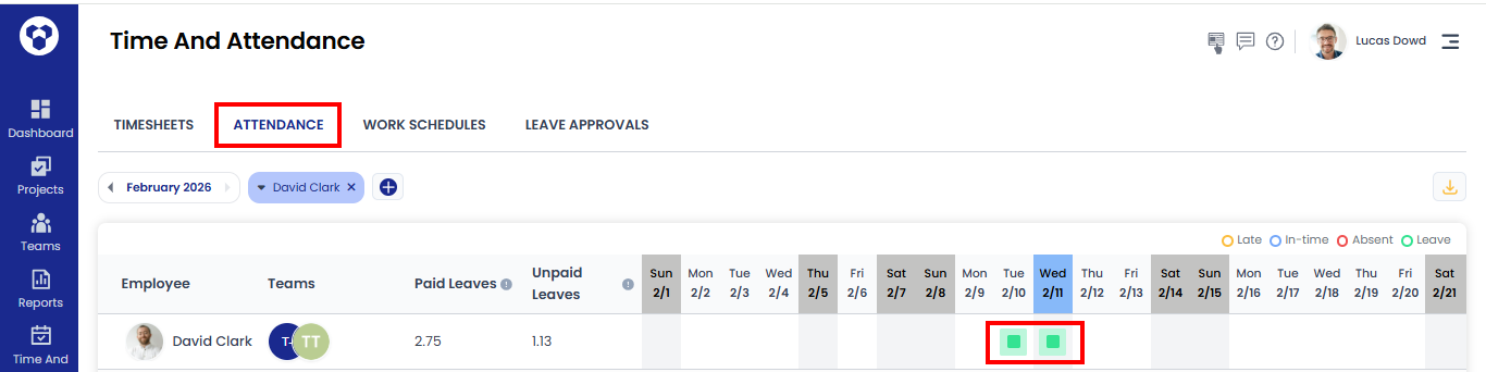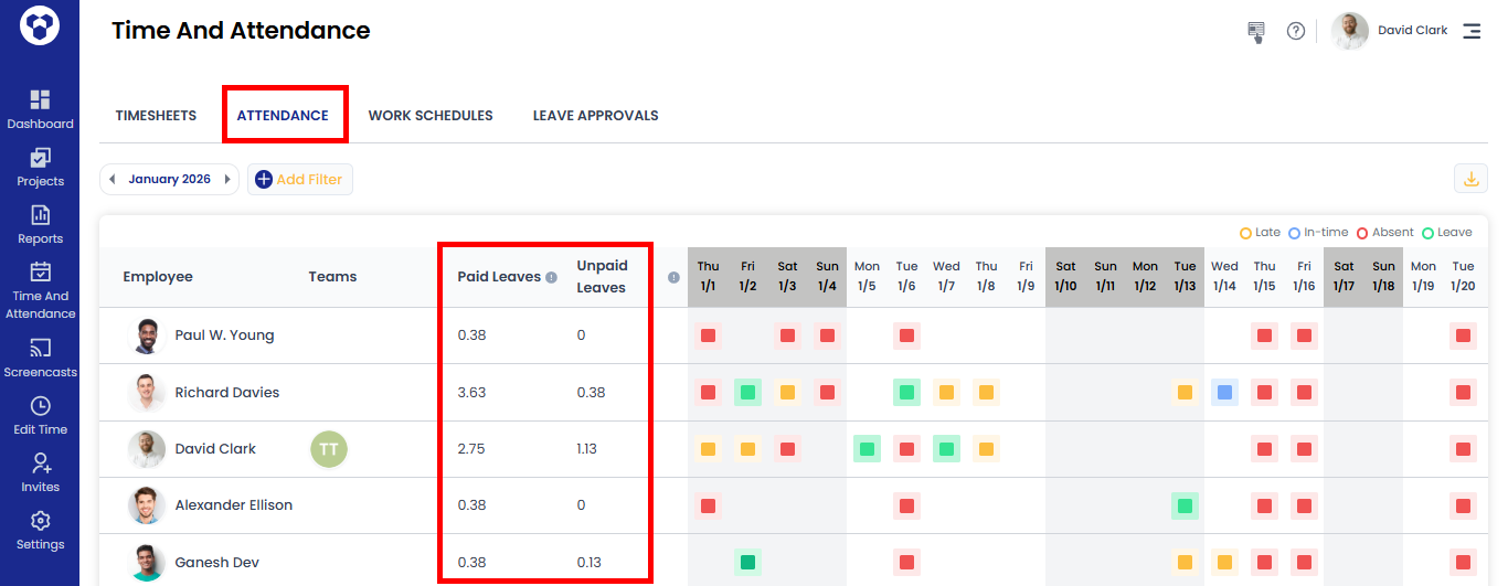 You can also check each user’s paid and unpaid leave count on the attendance page.