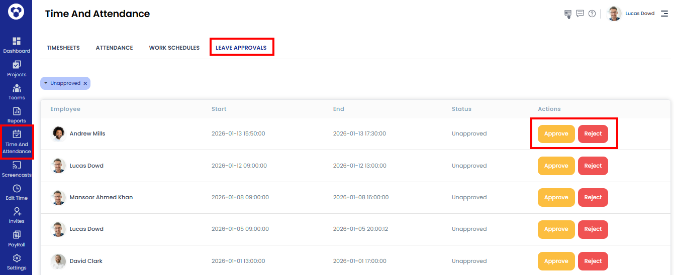 - Go to Time and Attendance → Leave Approval