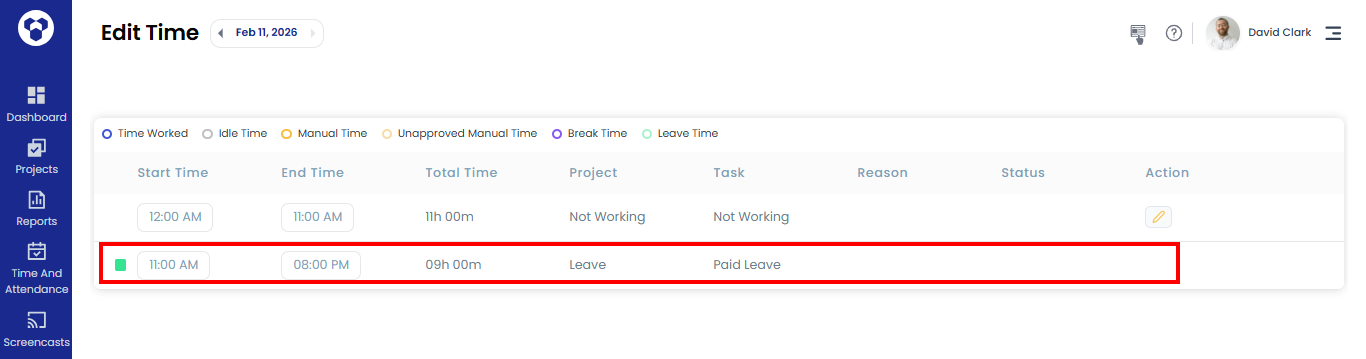 - Paid leave time cannot be edited from the Edit Time page.