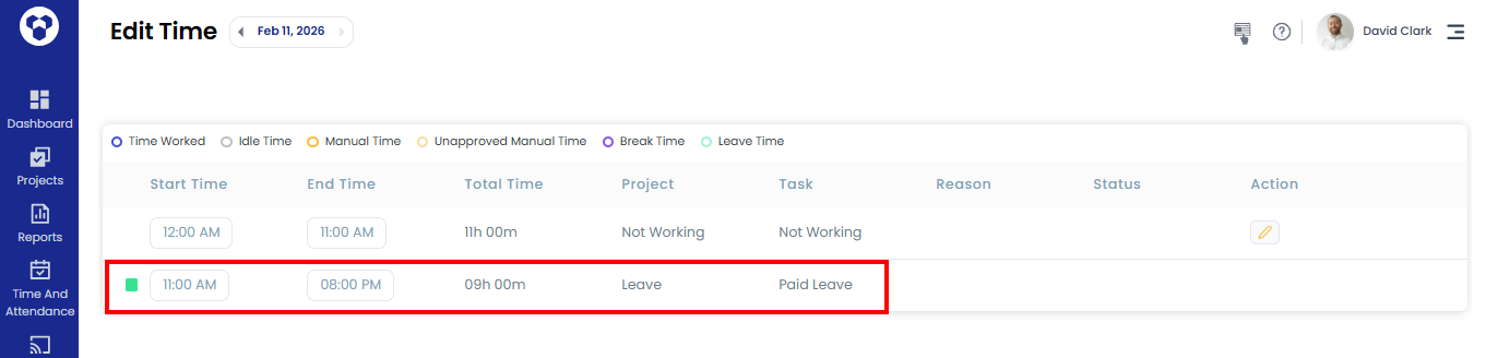 - Once approved, the paid leave time is automatically added in Reports.