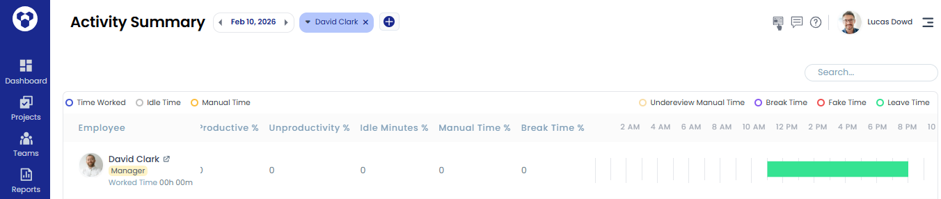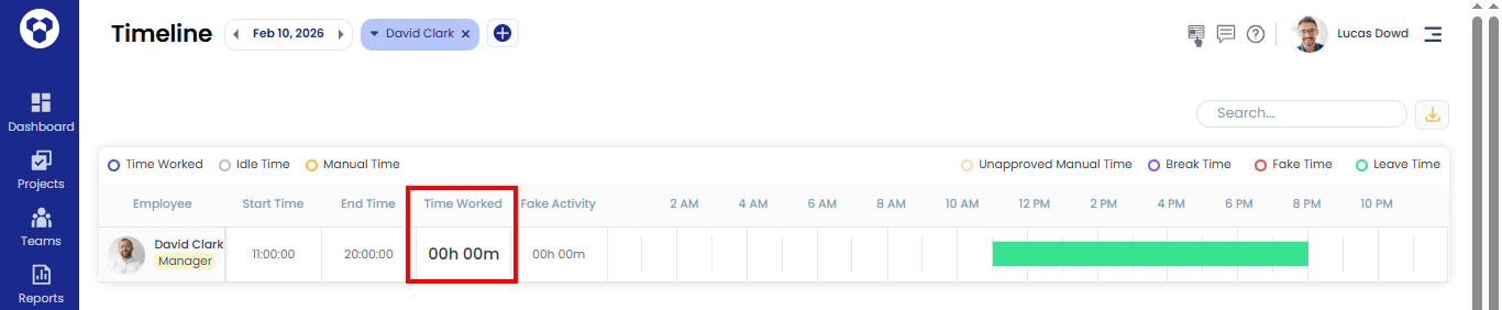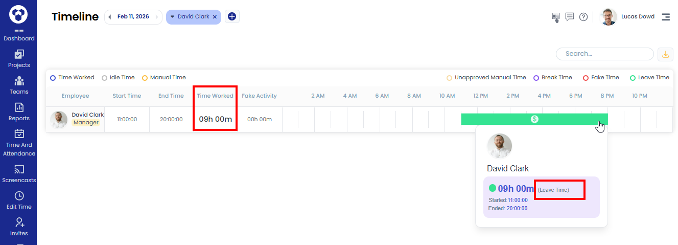 - In reports like Activity Summary and Timeline, leave time will be shown in green.