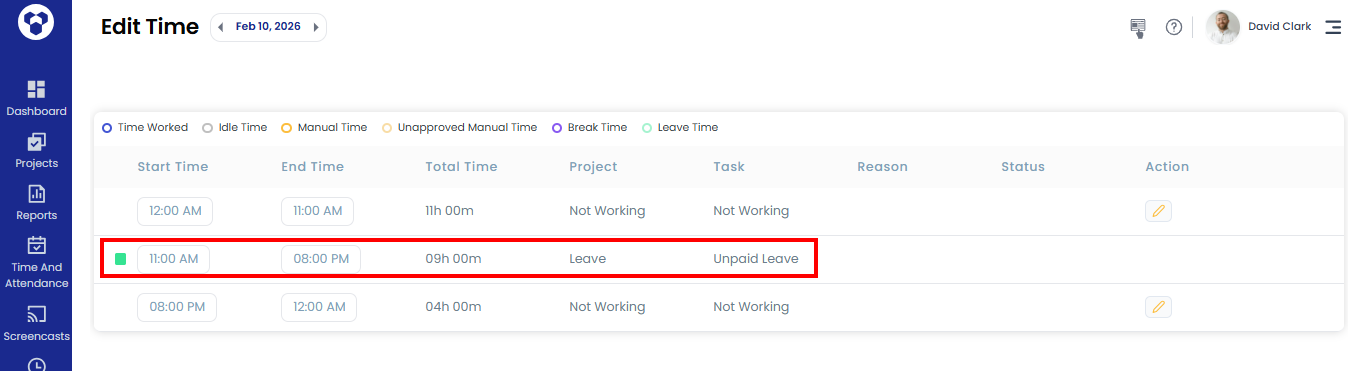 - Unpaid leave time cannot be edited from the Edit Time page.