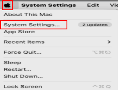 - Open System Settings. Click the Apple icon, then select System Settings