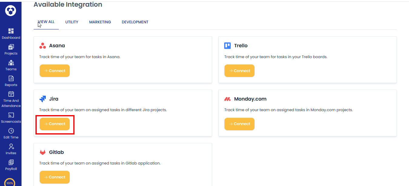 TraqNext allows you to connect your Jira projects so users can track time directly on issues assigned to them. Only assigned issues are fetched, ensuring clean and accurate task visibility in the TraqNext Desktop App.