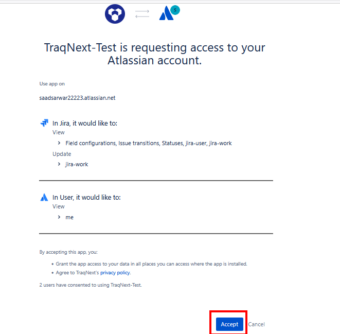 - Once you log in, you will be redirected to the authorization page. Clicks on Accept button.